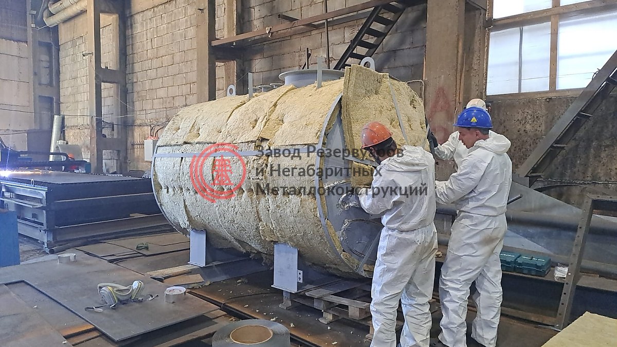 Процесс утепления резервуара РГСн-5 м3 для ООО "Энерготехсервис". Утеплитель: минеральная вата.
